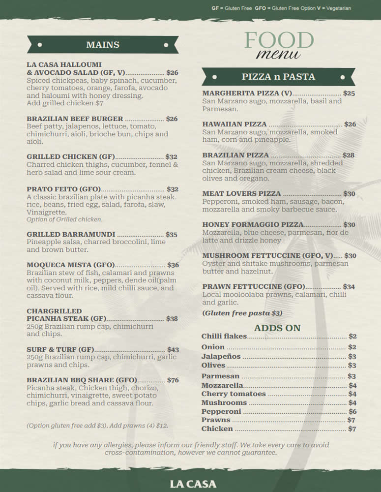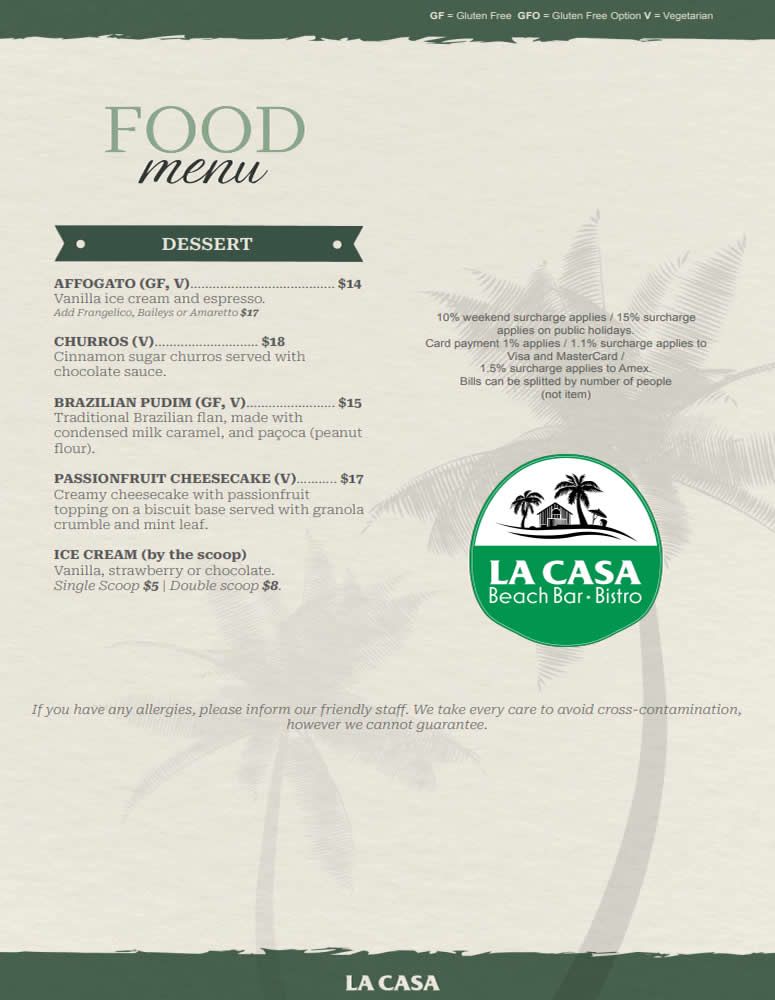 Please inform our team if you have any food allergies.